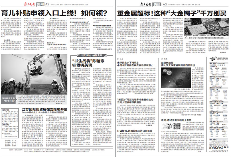 《扬子晚报》是江苏省级城市报纸之一,是江苏省南京市的主要日报之一。该报以深入报道地方新闻、国内外时事、经济信息以及文化艺术为主要内容,为读者提供全面、及时、权威的新闻信息和深入剖析的观点。该报以为市民提供时事新闻、社会动态与文化娱乐为主要目标,通过优质的新闻报道和深入的评论分析,快速赢得了南京市民的认可。